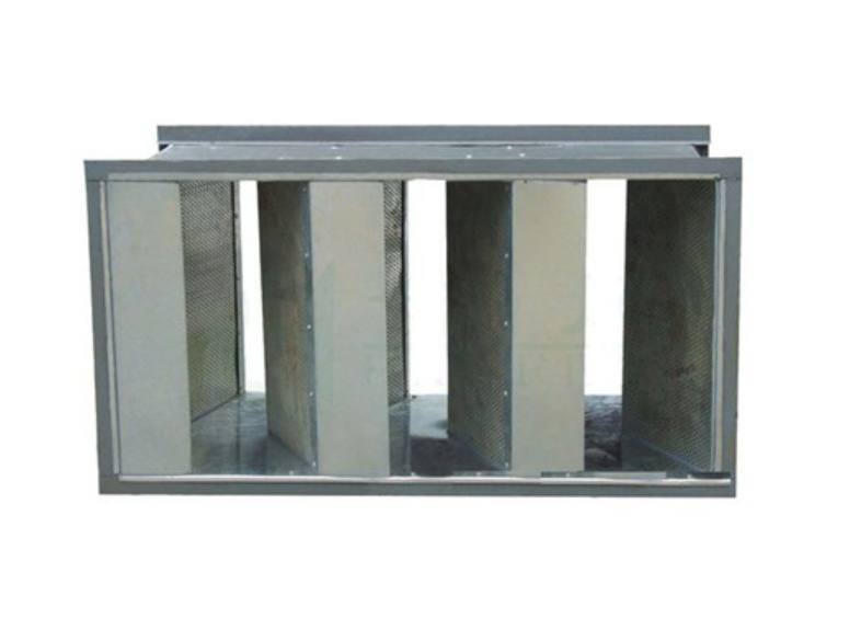 阻性折板式消声器是在阻性片式消声器基础上的一种改型,内部消声片为折线形,折板式消声器消声性能以中高频为主,消声量及压力损失大于(22~25dB(A)/m,40Pa/m)片式消声器,适用于工业与民用建筑中通风与空调系统消声。